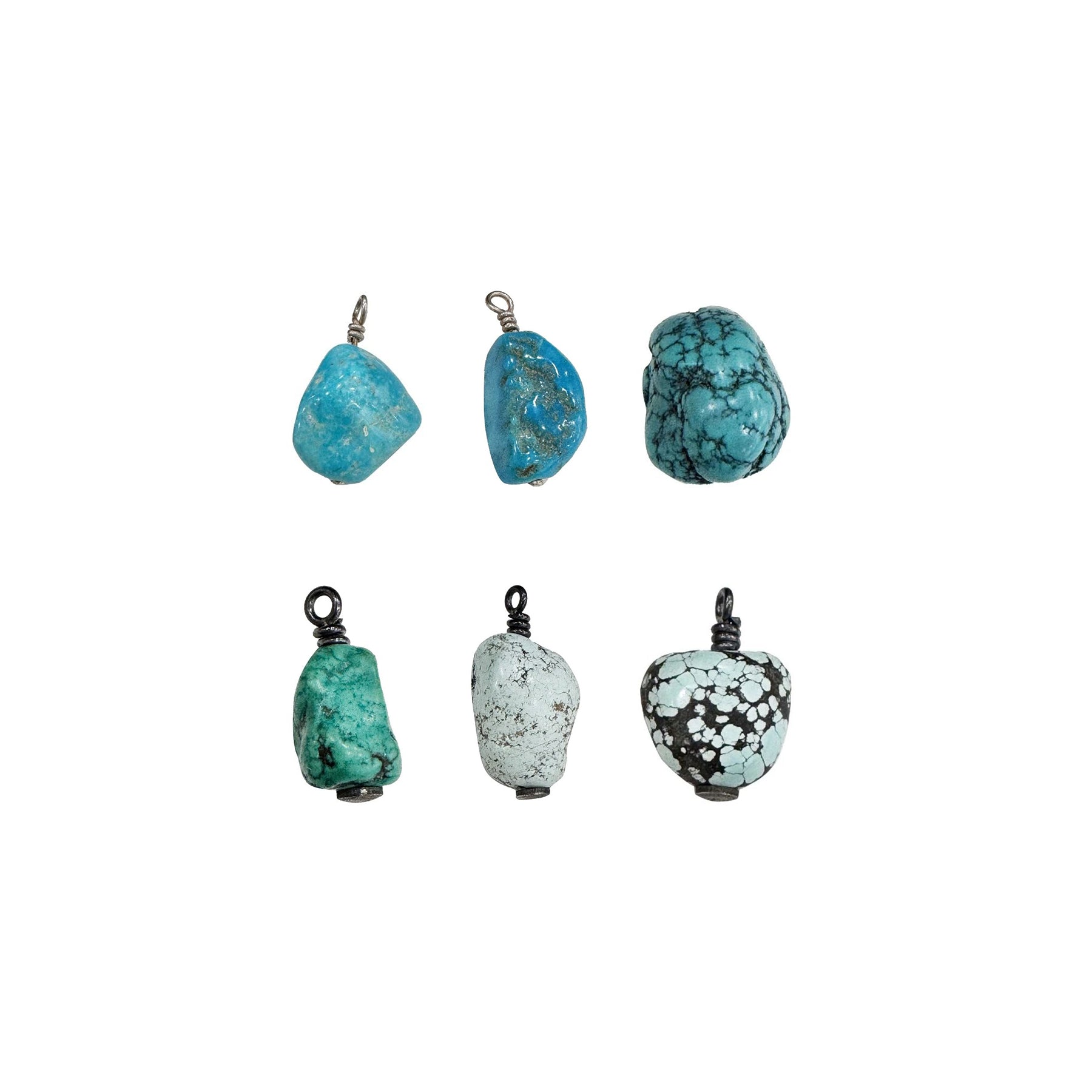 Natural turquoise carries a painterly spectrum of colors—deep azure, pale cerulean, emerald, and golden green—often veined with delicate spiderwebs, drifting mists, and scattered speckles. Born in the ancient depths of stone, it has been shaped by the slow alchemy of shifting earth, mingling minerals, and flowing waters. Across millions of years, turquoise has gathered a quiet energy, a sacred vitality. Each piece holds the wisdom of wilderness—a rare gift bestowed by nature itself.